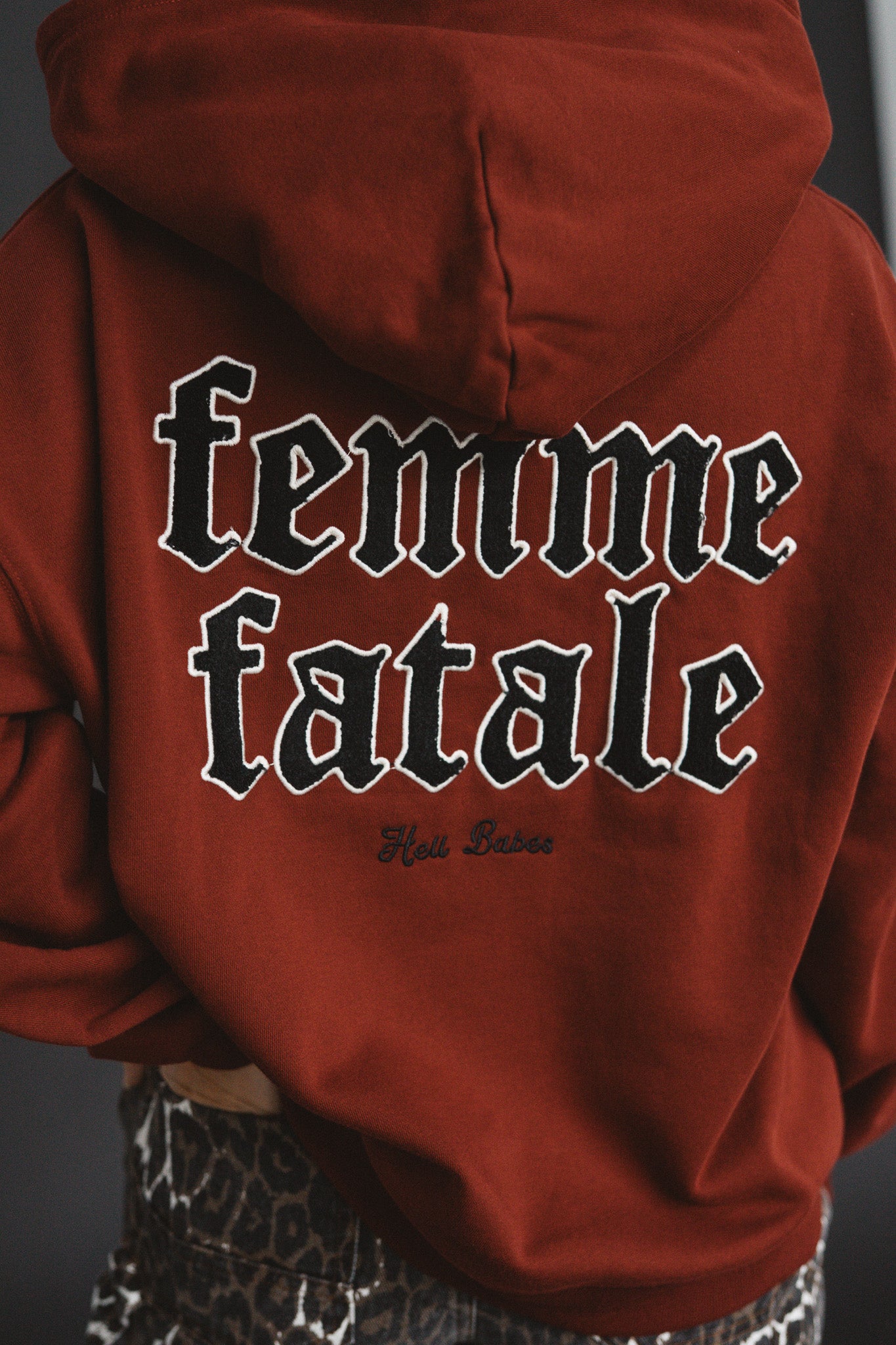- Flame embroidery detail at the hem