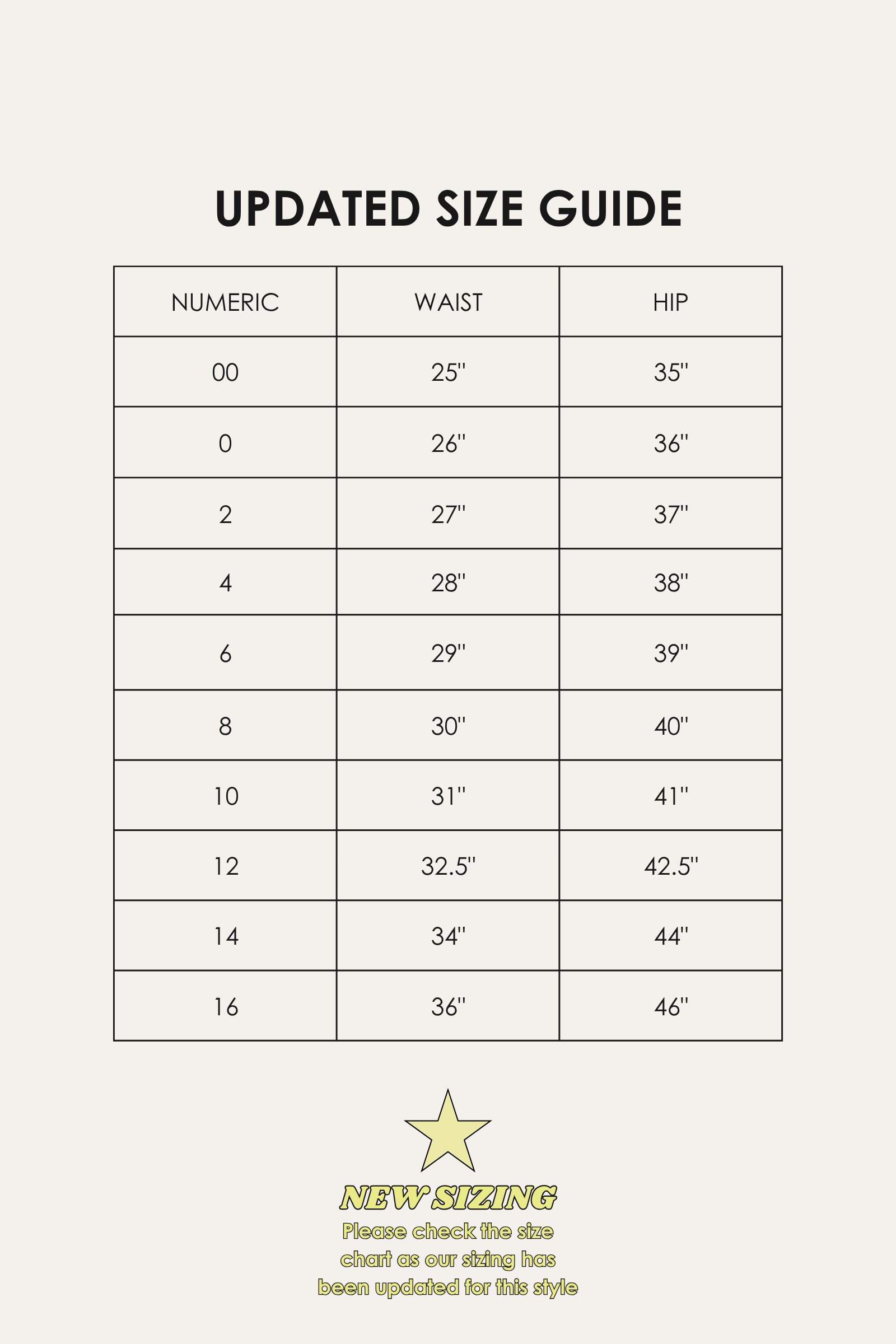 Size Size chart 00